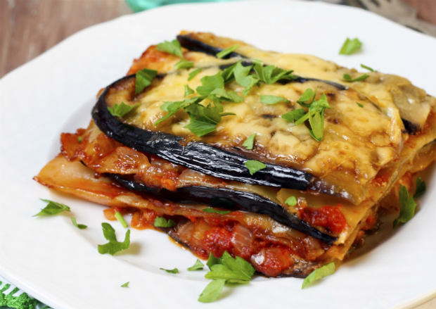 Lasanha de berinjela – A receita que não leva massa é mais light e tem menos calorias. Claudia Leitte prepara a receita com frango desfiado e molho de tomate natural. Adriane Galisteu também usa os mesmos ingredientes, mas também adiciona queijo frescal ralado. Ambas só comem um pedaço médio na refeição.